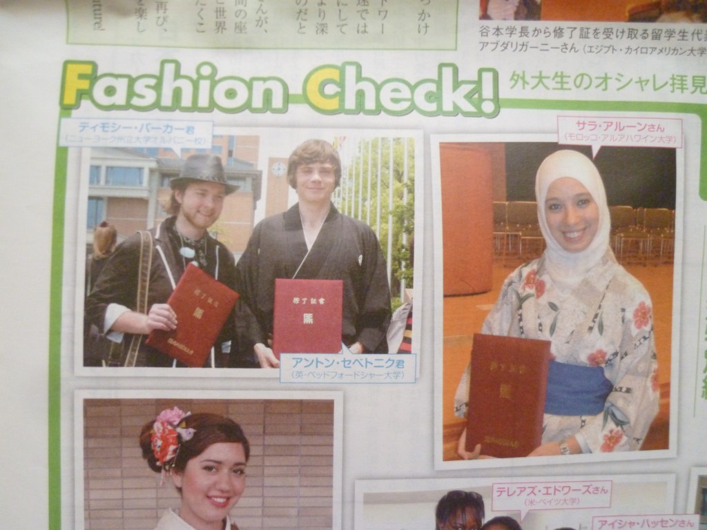During the graduation ceremony I ended up wearing a really traditional kimono (for men) thanks to my homestay mom. This caught an eye of some reporter who took pics.